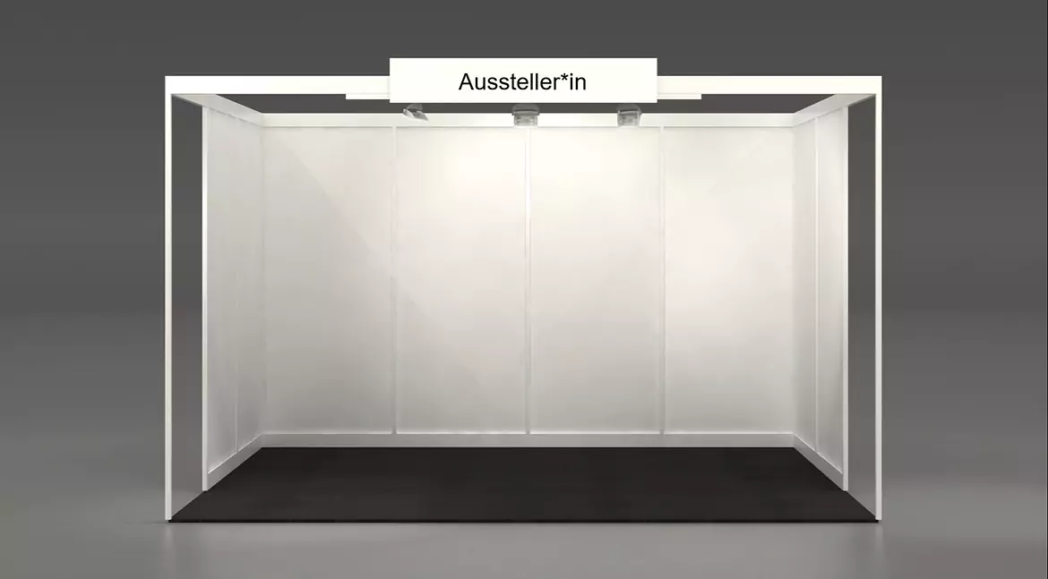 Sollte dies der Fall sein, bieten wir Ihnen die Standfläche mit Modulstand an, bei welchem folgende Zusatzoptionen inbegriffen sind: Rück- und Seitenwände, Beleuchtung, Beschriftung, Teppich anthrazit. Sie können Standflächen in den Grössen von 2x2m bis 3x8m auswählen.